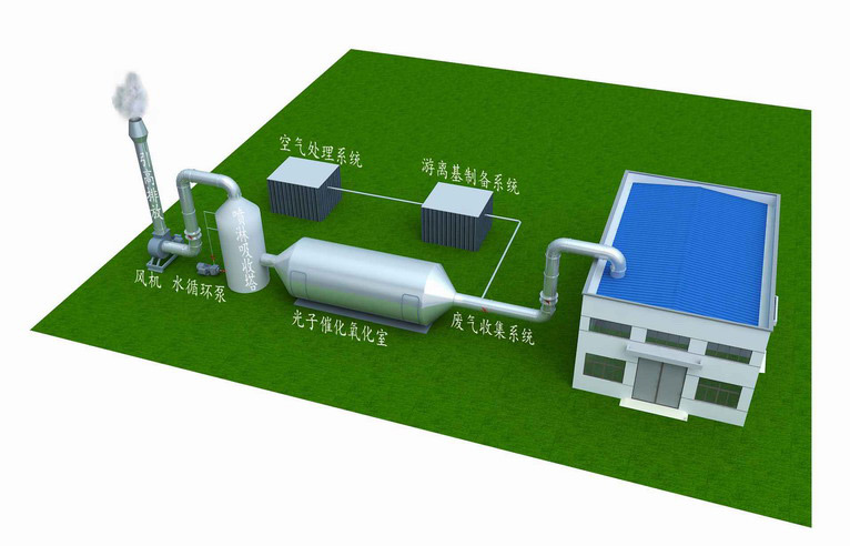2、除空气和氧气外,无需添加任何物质,只需要设置相应的排风管道和排风动力,使恶臭气体与游离基气体进行脱臭分解净化,无需添加任何物质参与化学反应。